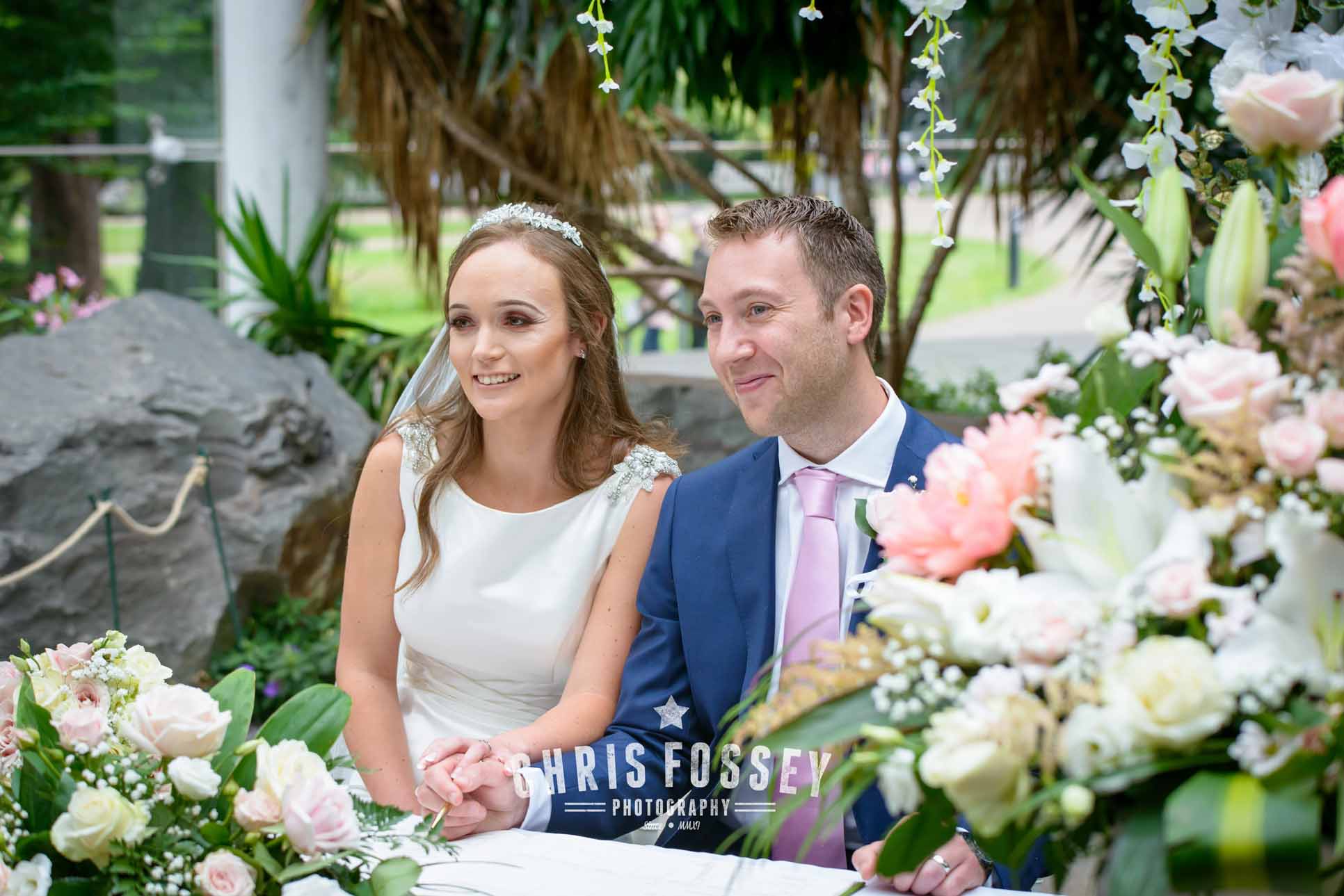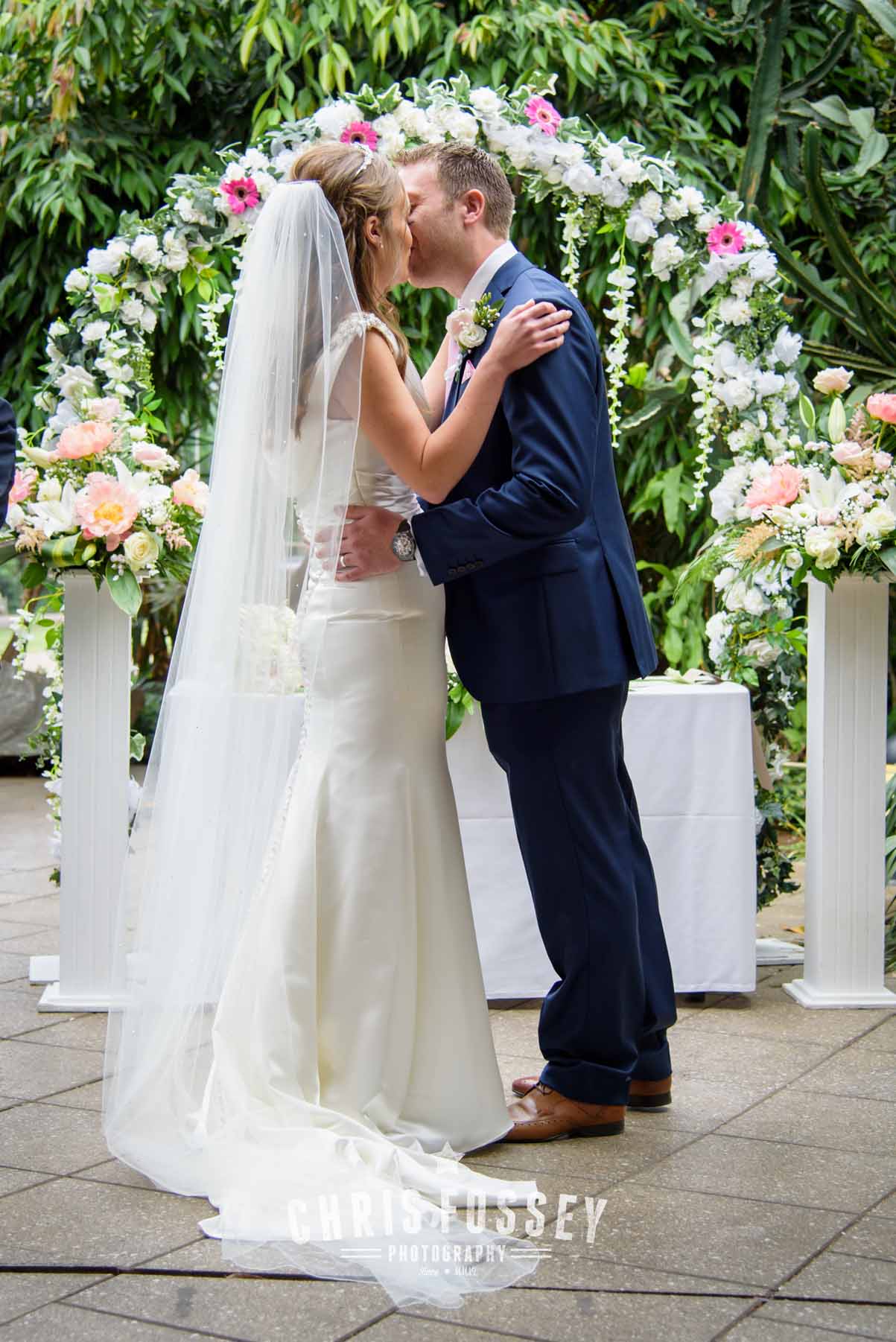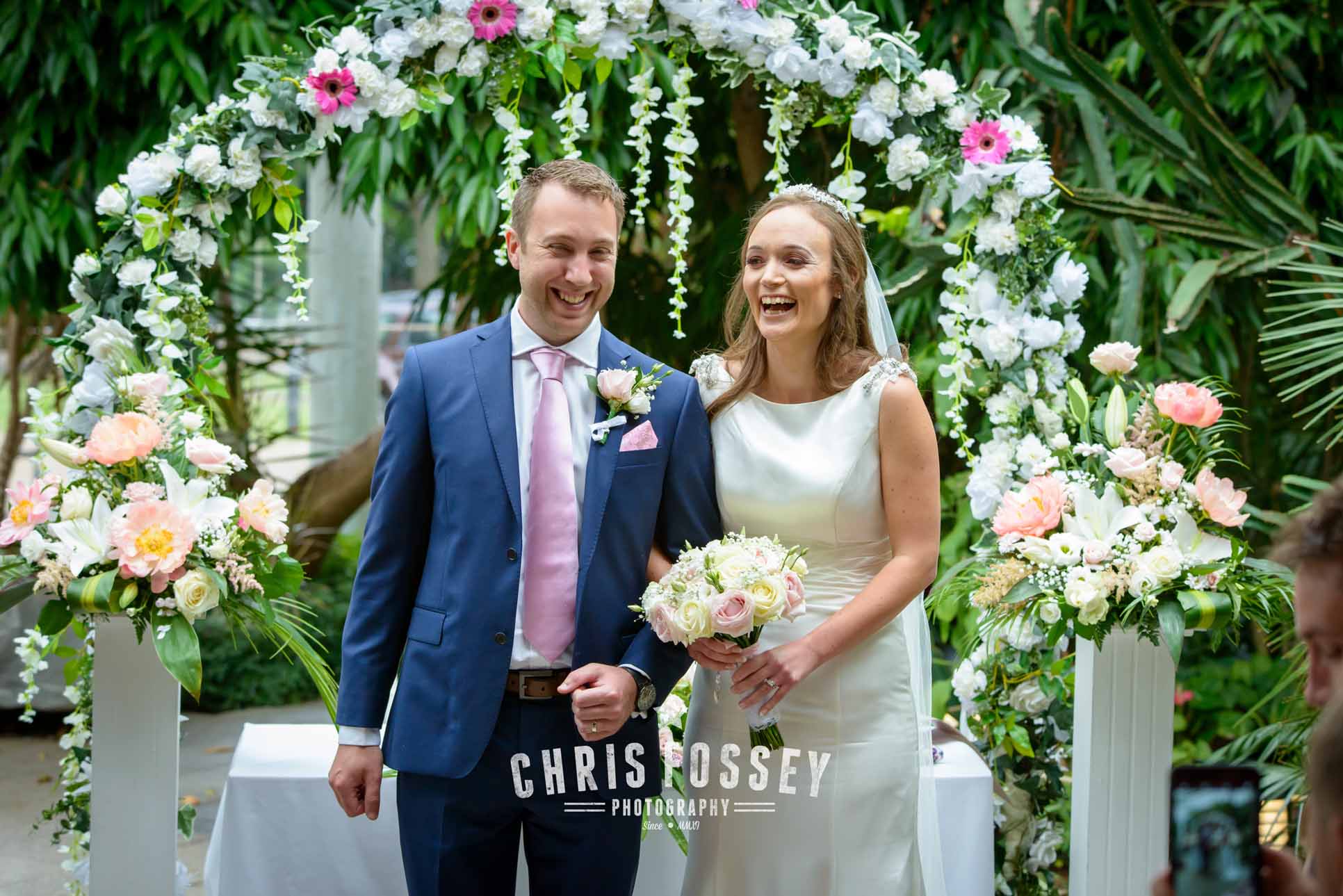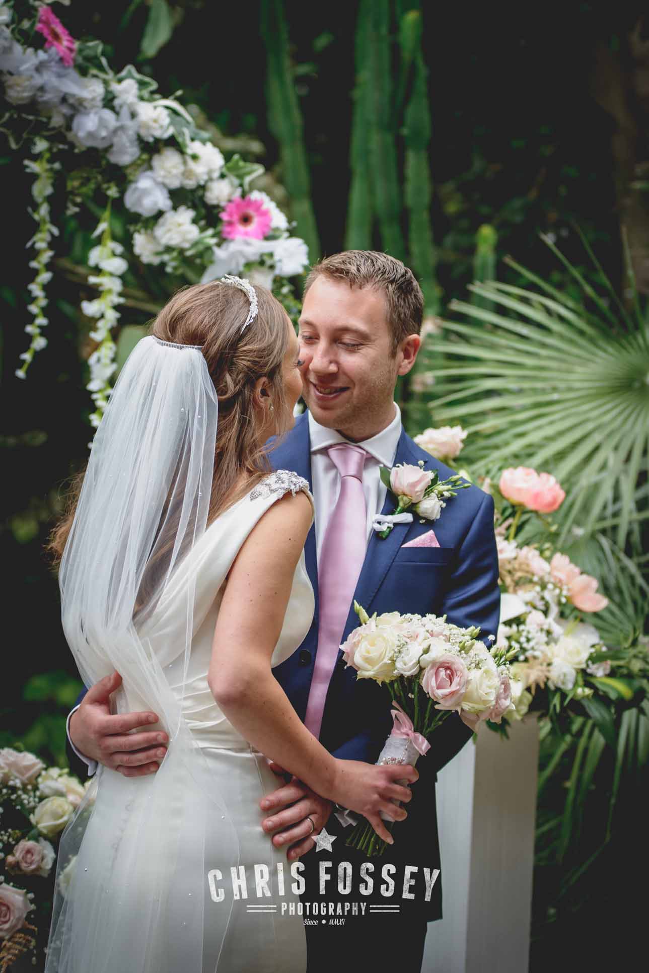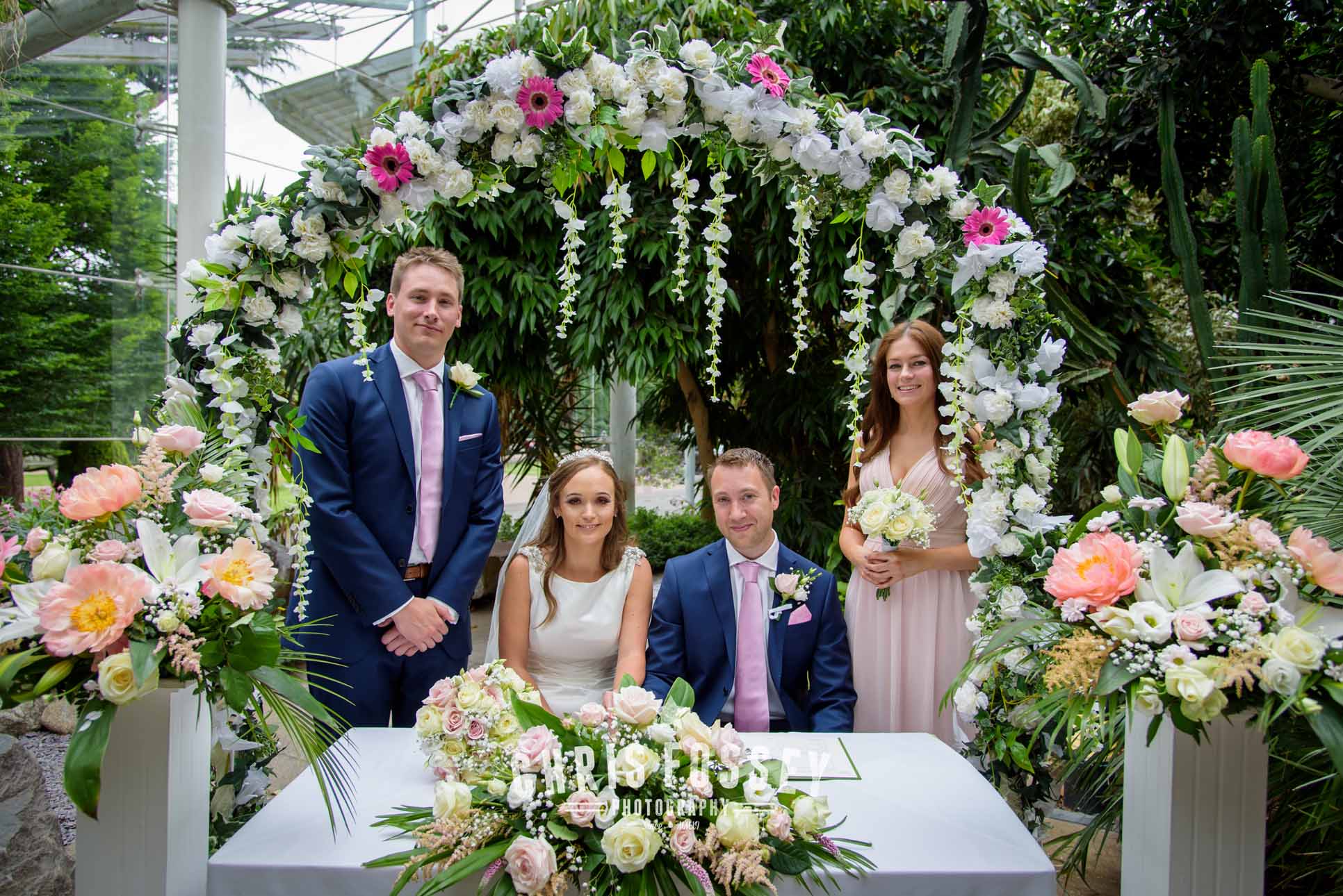 The Bridal Party was then taken by VW Camper Van (always a superb vehicle for weddings in my opinion!) to Jephson’s for the ceremony. It was there I met the Groomsmen. Steve the Groom had laid out a touching message to Jan written in petals for her entrance. Jephsons look incredible (it always does) especially as the couple had decorated the ceremony area with a divine floral display.