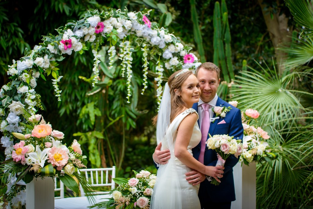 The Bridal Party was then taken by VW Camper Van (always a superb vehicle for weddings in my opinion!) to Jephson’s for the ceremony. It was there I met the Groomsmen. Steve the Groom had laid out a touching message to Jan written in petals for her entrance. Jephsons look incredible (it always does) especially as the couple had decorated the ceremony area with a divine floral display.